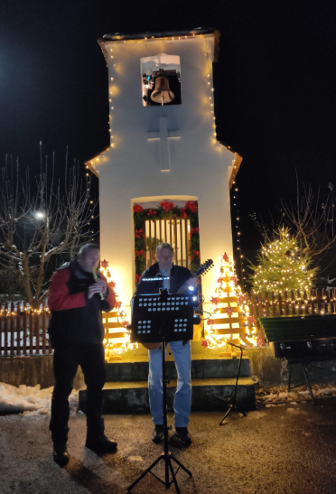 Poslední listopadový sobotní podvečer, náves pokrytá zbytky tajícího sněhu a nazdobená kaplička v očekávání nadcházejícího adventu. Blížící se vánoční svátky podtrhla dvojice hudebníků Ludi a Tondy, s nimiž jsme si rádi zazpívali známé vánoční písně a koledy. K následnému společnému klábosení už neodmyslitelně patří hrnek svařeného vína a něco dobrého k zakousnutí.